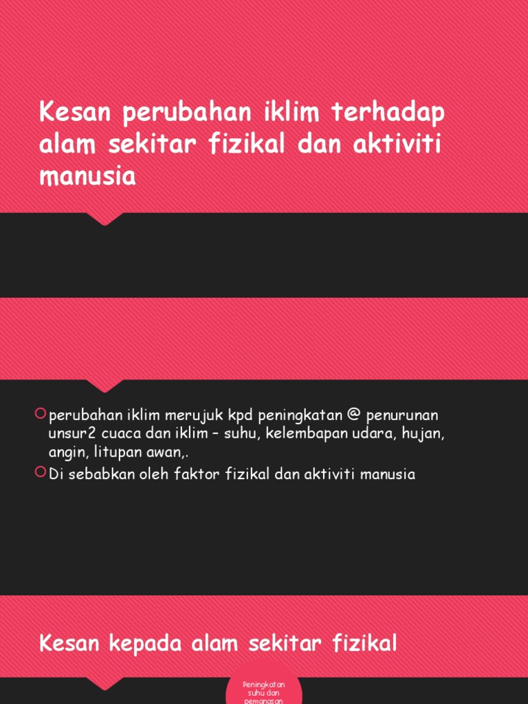 Pemanasan Global from image.slidesharecdn.com Walaupun kesan pemanasan global ini tidak begitu ketara, namun ia sebenarnya mempunyai kesan dahsyat terhadap glasier di kawasan artik dan antartika. Fenomena ini berlaku disebabkan oleh kesan rumah hijau yang terjadi akibat peningkatan tahap karbon dioksida. Anda mungkin sudah tahu apa kesan pemanasan global terhadap alam sekitar. 3.1.1 bahang matahari terus ke bumi. A) peningkatan suhu di bandar dikenali sebagai fenomena pulau haba bandar. Peningkatan isipadu air sungai secara mendadak akan menyebabkan. Langkah penyelasaian kepada kesan kegiatan manusia terhadap kawasan tanah pamah? Pencemaran alam sekitar sudah wujud sejak dari zaman batu lagi apabila manusia mula belajar untuk menghidupkan api.