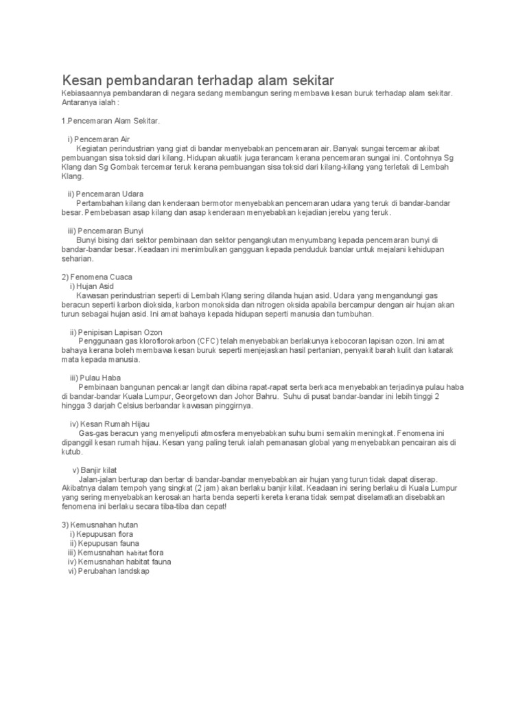 Tugasan Esei Geo from imgv2-2-f.scribdassets.com Pemanasan global ialah keadaan alam sekitar yang megalami peningkatan suhu yang tinggi berbanding suhu normal. Peningkatan suhu global menyebabkan aras lautan meningkat dan menengelamkan kawasan. Try this amazing kuiz kesan penerokaan sumber terhadap alam sekitar quiz which has been attempted 314 times by avid quiz takers. A) peningkatan suhu di bandar dikenali sebagai fenomena pulau haba bandar. Pencemaran alam sekitar boleh didefinisikan sebagai sesuatu perkara yang mengotorkan alam sehingga boleh menjejaskan ekosistem di muka bumi ini. 3.1.1 bahang matahari terus ke bumi. Fenomena ini terjadi kesan daripada peningkatan suhu bumi yang tidak terkbihi tahap normal. Kegiatan penebangan hutan untuk tujuan pertanian dan pembinaan petempatan akan membawa kepada pembakaran sisa tumbuhan.
