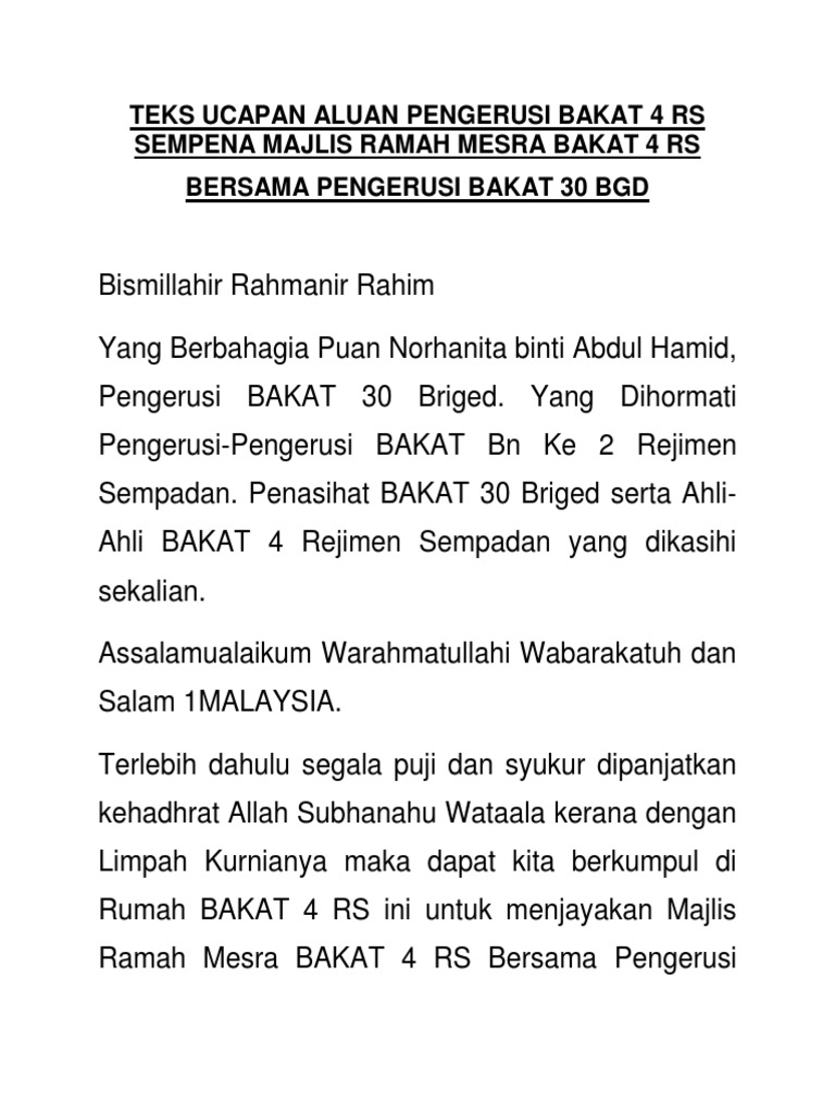 Terima kasih saudari pengerusi majlis, yang saya muliakan, yang berbahagia prof. الْيَوْمَ أَكْمَلْتُ لَكُمْ دِينَكُمْ وَأَتْمَمْتُ عَلَيْكُمْ نِعْمَتِي وَرَضِيتُ لَكُمُ الْإسْلامَ دِينًا. Yang berhormat tan sri bernard giluk dompok menteri perusahaan perladangan dan. Contoh teks ucapan alu aluan pengerusi majlis. Sangat pantas untuk diganjar dengan ingin mengucapkan selamat juga kepada suami di facebook? Pengacara majlis amanat menteri kementerian pertanian & industri asas tani 2013. Ucapan jemputan pengerusi jkuasa sambutan wehd peringkat kebangsaan 2016, en. Pihak majlis mengucapkan terima kasih diatas ucapan yang disampaikan sebentar tadi. Terima kasih saudara/i pengerusi majlis. Ucapan pengerusi di majlis makan malam suruhanjaya perkhidmatan awam malaysia bersama yab perdana menteri. Contoh skrip forum remaja bertajuk ' peranan remaja dalam penggunaan teknologi hijau' pengerusi. Emcee, remarks, greetings, welcoming, splash screen. Masa cue ann 5 11.33 am ucapan alu aluan pengerusi majlis :